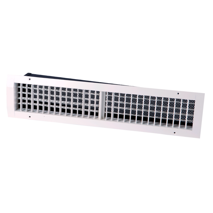 • Tilluftsgaller med ställbara lameller och fast luftriktare för industri- och lagerlokaler.